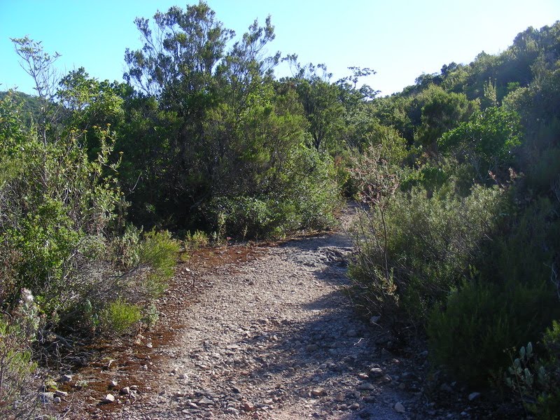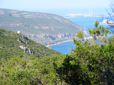 Voltei ao alcatrão e iniciei a subida em direcção à praias da Arrábida, passei pela entrada para o Convento de "El Carmen" e cerca de 1,70 km mais à frente cortei à esquerda para o trilho (em caso de duvida basta reparar nas marcas pintadas na rocha).