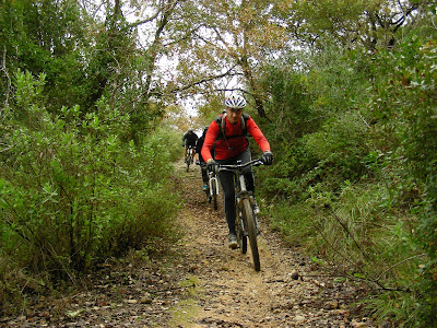 Seguimos pelo pomar até ao "Fio-Dental" e como na altura havia um grupo que estava a tentar fazer um vídeo, nós para não atrapalharmos as filmagens optámos tal como na semana passada, por descer o estradão da encosta e só o "Indiana Murilhas" seguiu por ali (afinal de contas, ele já está mais do que habituado a grandes películas, eheheh).